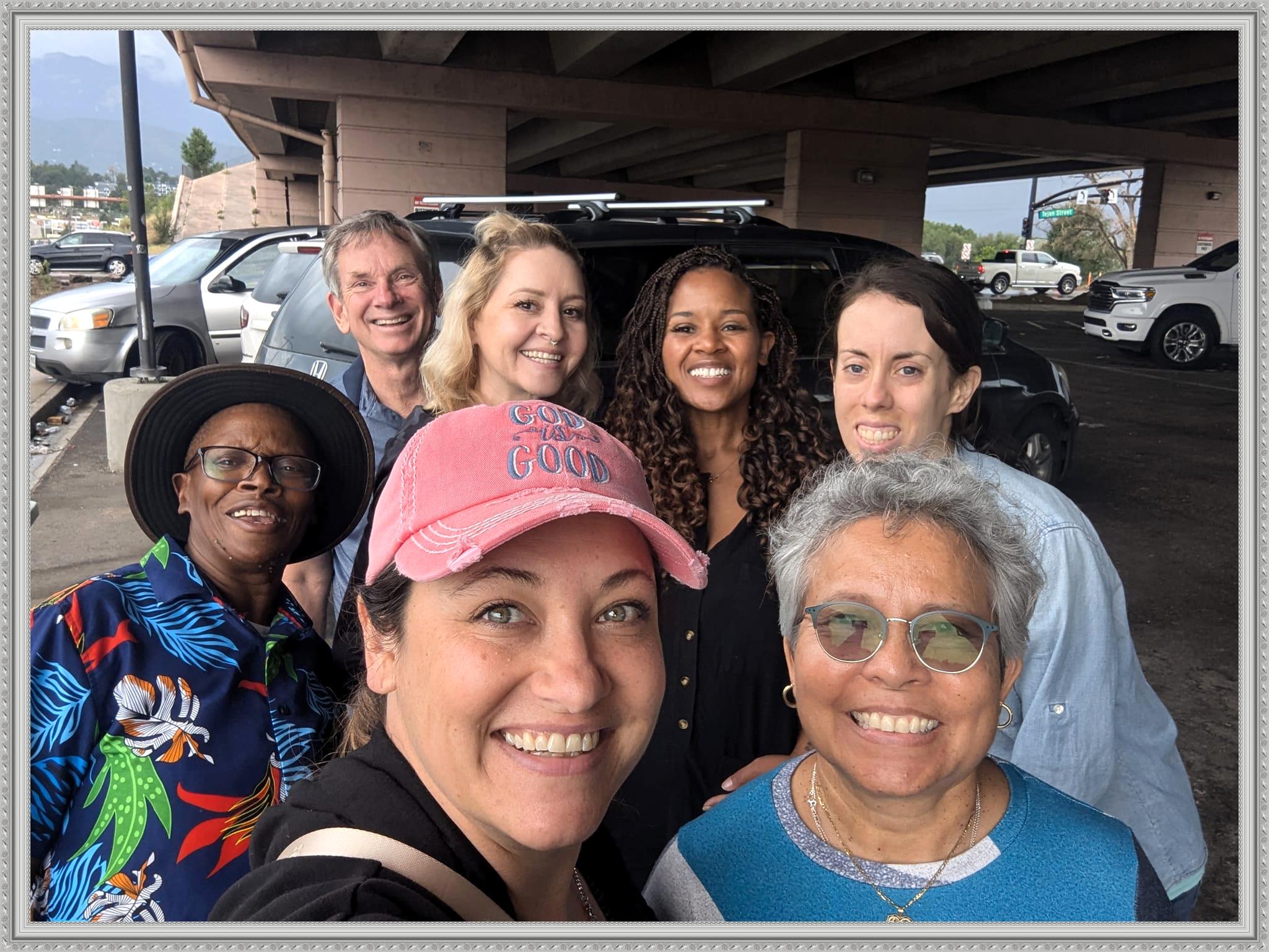 In 2015 I became involved in supporting our "Unhoused" people (initially volunteering with "Blackbird Outreach"). I became passionate about helping our unhoused people because I witnessed folks being evicted from a camp they had set up at the Springs Rescue Mission property. I saw elderly people walking with all their possessions in a shopping cart, some with their small pet tucked into their coats (because it was cold) with no destination. They looked so lost. I put myself in their shoes. Over the years I met many folks who were being told where they couldn’t live but not where they could live. This could happen to so many of us, after losing a job, after a major health crisis, after the death of the household provider… There is such a lack of affordable health care (including mental health) which places so many out on the streets. The cost of housing is far beyond the income for so many. In 2016 I became the co-founder of "Spreading Smiles & Sandwiches". Initially "Spreading Smile & Sandwiches" would come together at Dorchester Park on the second Sunday of every month to help hand out supplies to displaced people. At these meetups, volunteers distributed a hot lunch, a to-go lunch, granola bars, water, clothing, shoes, sanitary items, compassion, and additional resources to help those living on the street. Today this organization has moved to another location due to city government barriers but still serve our unhoused people, doing what our name says: Spreading Smiles & Sandwiches! And I would be remiss if I didn't mention that Vista Grande United Church of Christ in heavily involved in making our friends smile by making sandwiches.